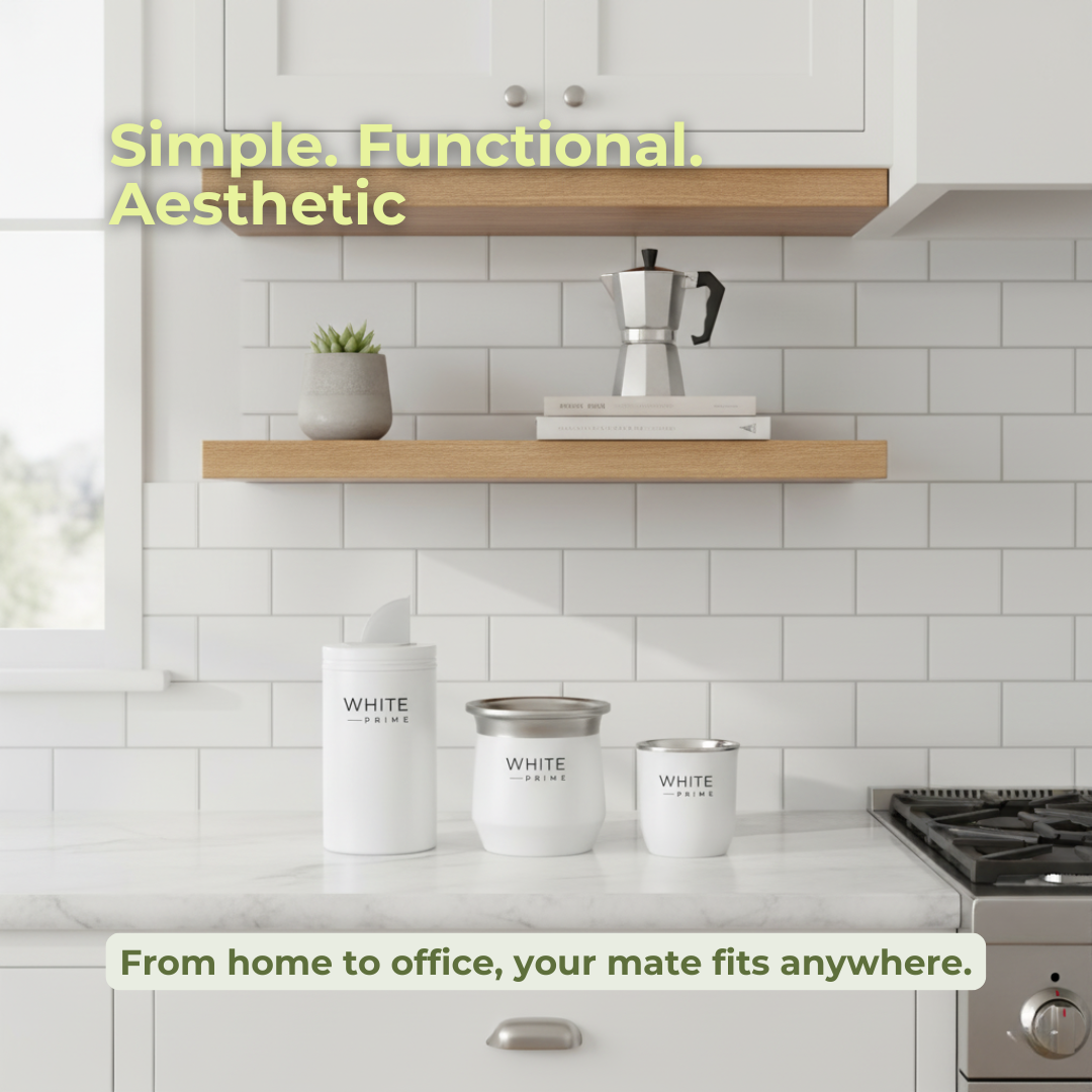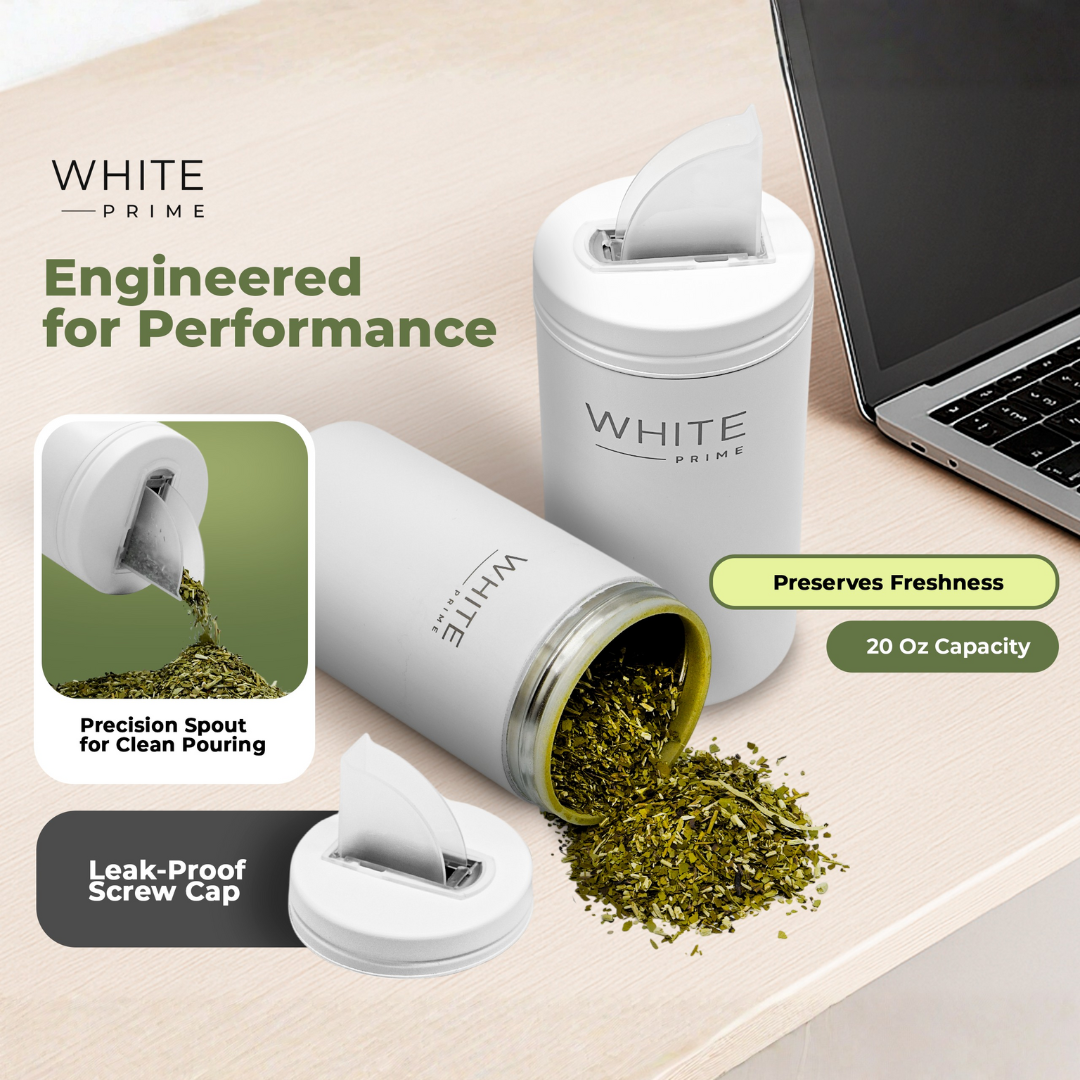 Contenedor de acero inoxidable 16 oz para Yerba Mate, té o café con pico vertedor| Yerbera | WHITE Prime