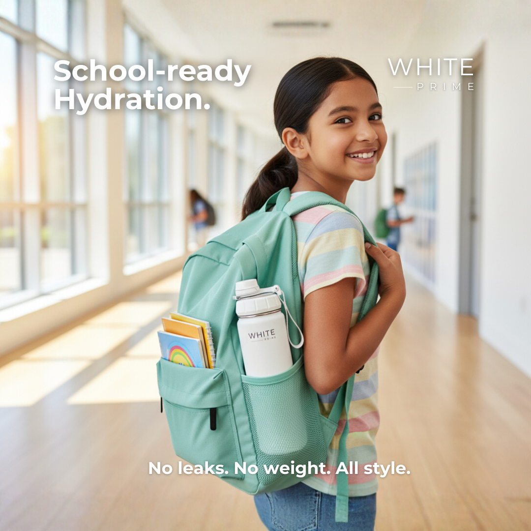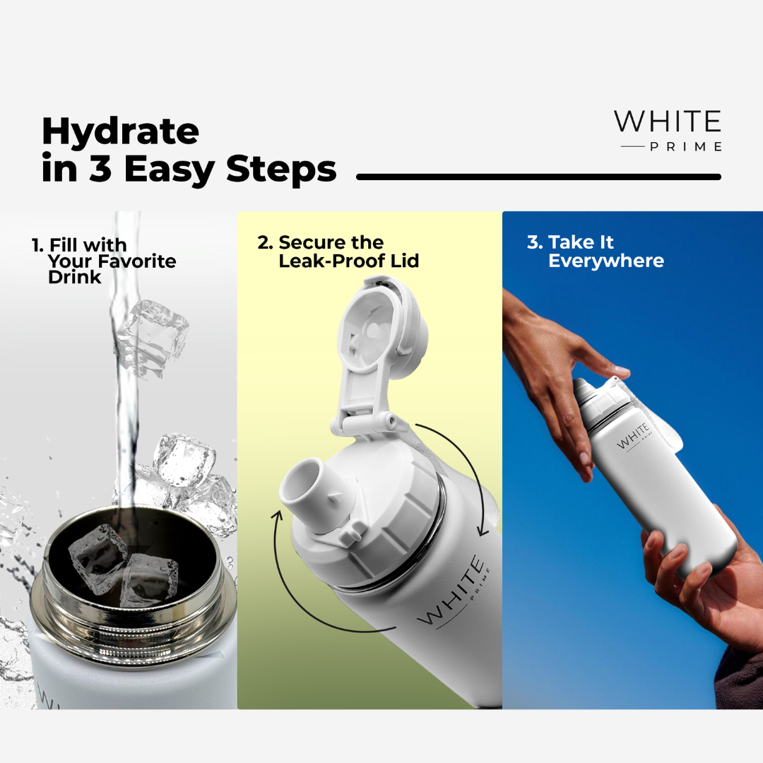 The WHITE Prime 18 oz Insulated Stainless Steel Water Bottle is designed for everyday hydration with performance and style.