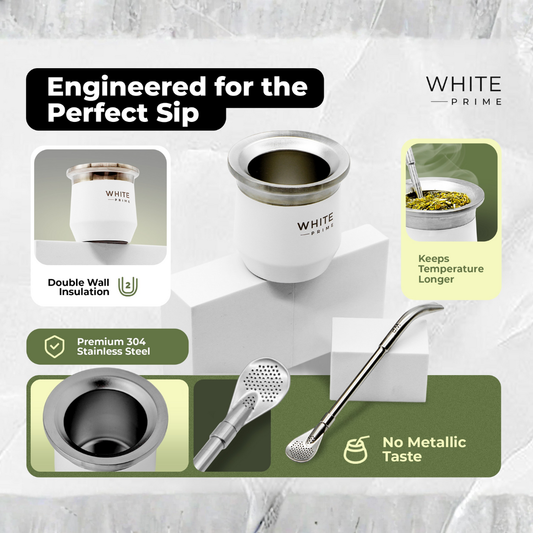 1.2 L Yerba Mate Thermos Kit To Go | WHITE Prime
